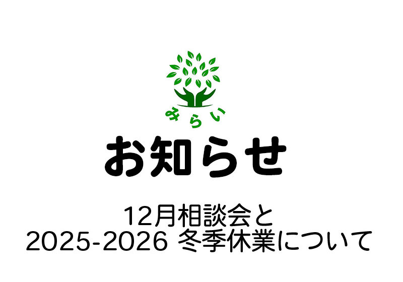 12月相談会の開催日と2025-2026冬季休業のご案内について